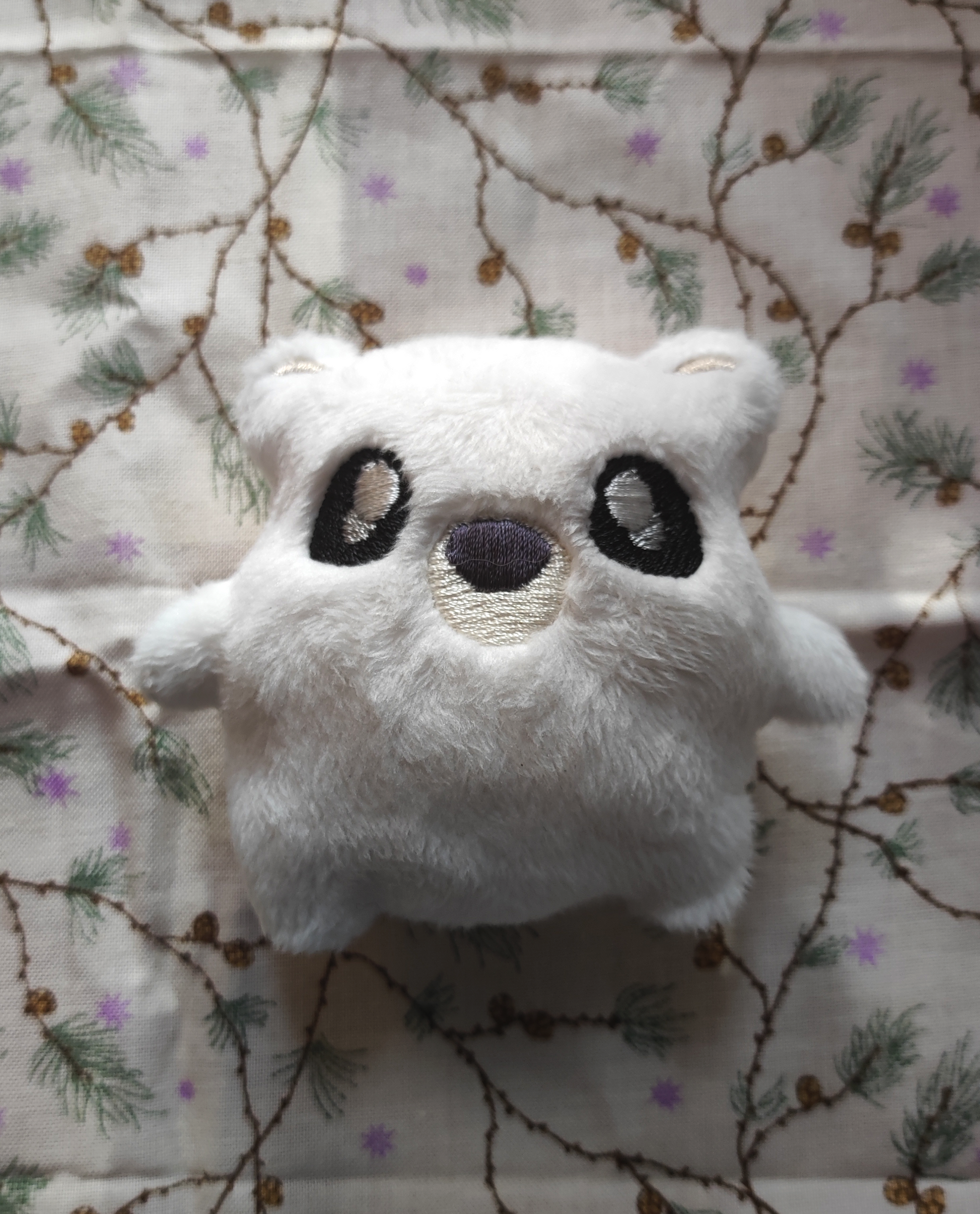 Réalisé avec une brodeuse et rembourré puis assemblé par couture à la main.