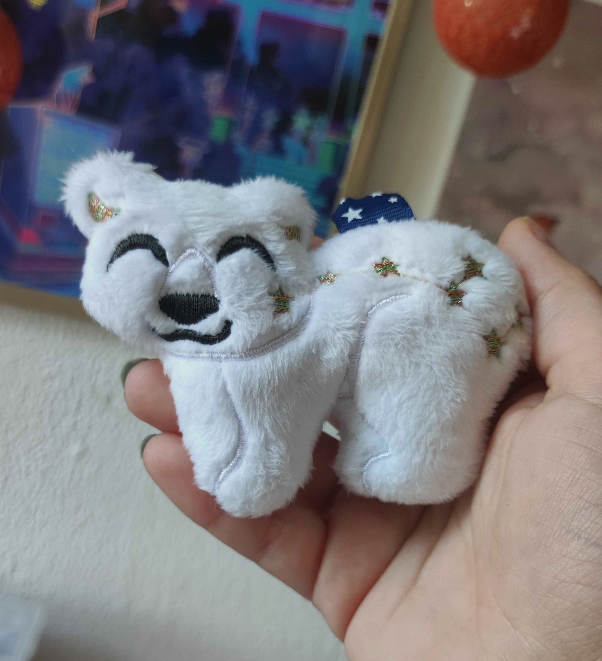 Liste complète des matériaux utilisés. Tissus en minky (Shannon fabrics), poil de 6mm, doux (polyester) || Rembourrage 100% polyester || Attache métallique.